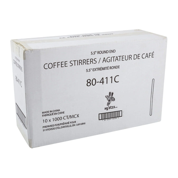 511 Foodservice - 5.5" Wooden Round End Coffee Stirrers, 1000/bx, 10bx/cs - 80-411C