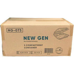 7" x 7" MFPP Hinged Container with 3 Compartment, 150/cs - LRNG073