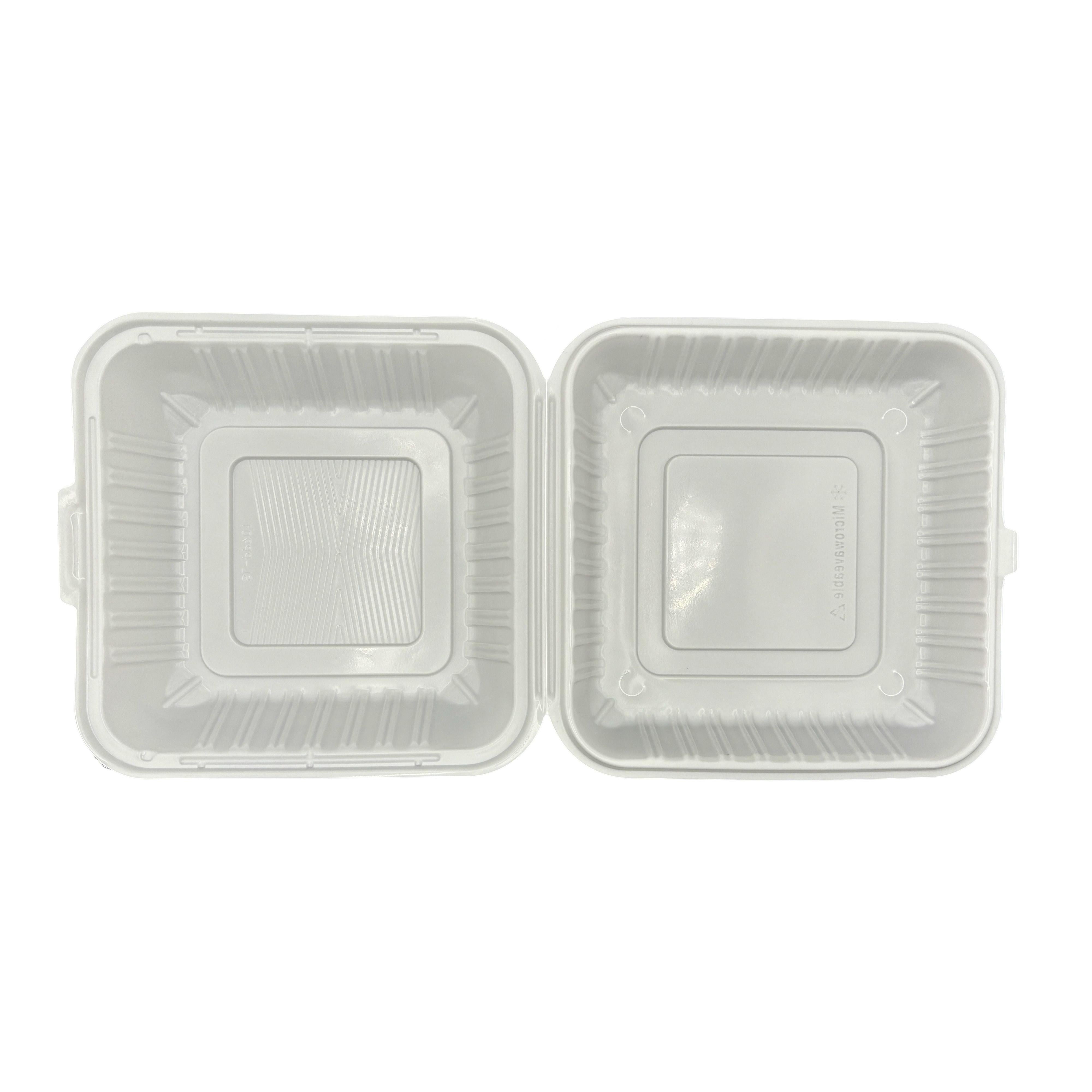 9" x 9" White MFPP Hinged Container, 150Pcs/Cs, 60Cs/Sk, 6Cs/Tier - SL-PP901