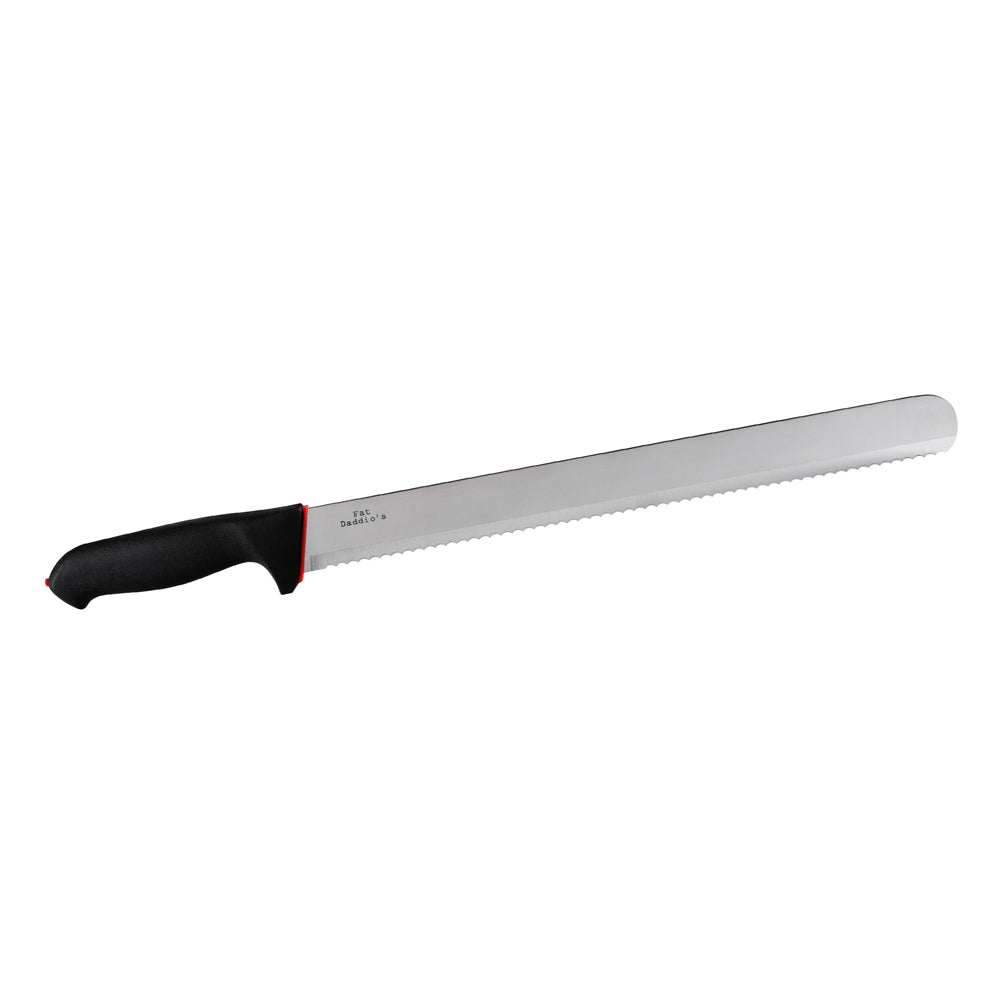 Bring precision and durability to your kitchen with the Fat Daddio's 14" Cake Slicer / Bread Knife. Designed for professional and home bakers alike, this knife features a long 14-inch serrated blade that effortlessly slices through cakes, breads, and other baked goods without crushing or tearing. Perfect for torting cakes or handling crusty loaves, it ensures clean, even cuts every time.