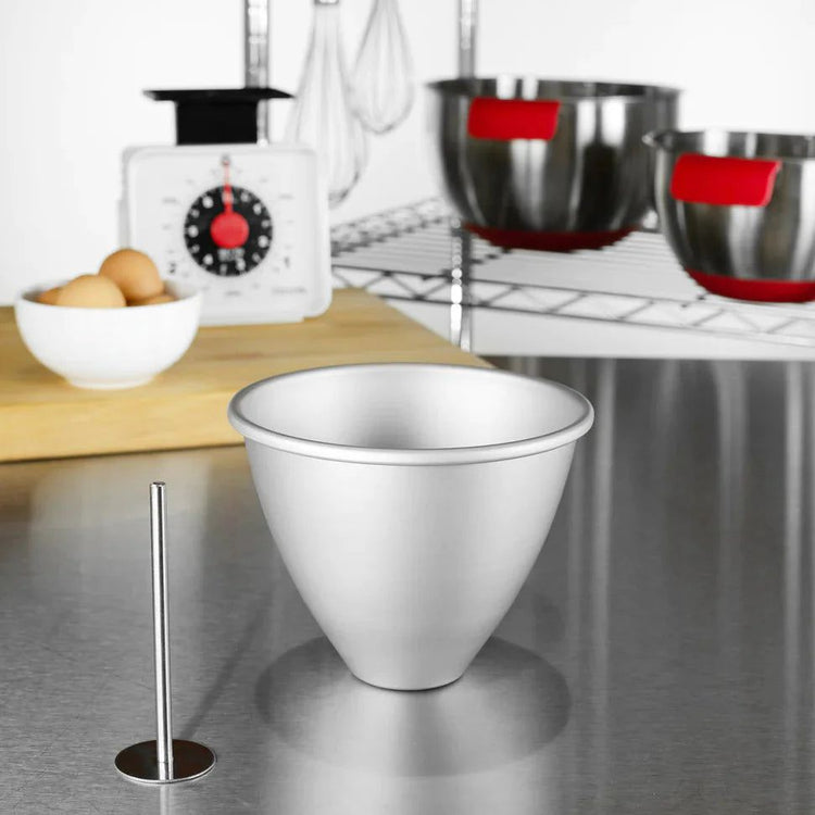 Your cake decorating skills to the next level with Fat Daddio's 7" Anodized Aluminum Dolly Varden Pan. Designed for precision and durability, this pan allows you to effortlessly create stunning doll-style dress cakes, whimsical hats, volcanoes, and other novelty shapes that will captivate and delight. Unleash your creativity and create show-stopping cake designs with ease using Fat Daddio's 7" Anodized Aluminum Dolly Varden Pan. With its premium construction, effortless design, and versatile capabilities, it's the perfect tool for bringing your imaginative cake creations to life.