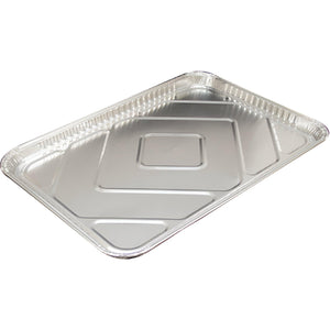 Full-size sheet cake aluminum foil pan. Measuring nearly 26"x18", these giant disposable sheet cake pans are by far the largest size aluminum pan in our extensive foil pan line. They are made with ultra-heavy 80 gauge 100% recycleable aluminum. Ideal for big volume baking, large cakes and more. HFA Corporation's 240 Oz Full-Size Foil Cake Pan, a versatile and reliable solution for all your baking endeavors. This set includes 25 meticulously crafted foil cake pans, each boasting a generous 240-ounce capacity. Perfect for both home and commercial use, these pans are designed to accommodate large cakes, casseroles, and a variety of other culinary creations. Crafted from high-quality aluminum foil, these full-size cake pans ensure even baking and facilitate easy removal of your baked goods without compromising their integrity. The sturdy construction of the pans provides ample support during preparation, transport, and presentation. The convenience of bulk packaging with 25 pans per case makes it a cost-effective solution, catering to various baking projects or large-scale catering events.
