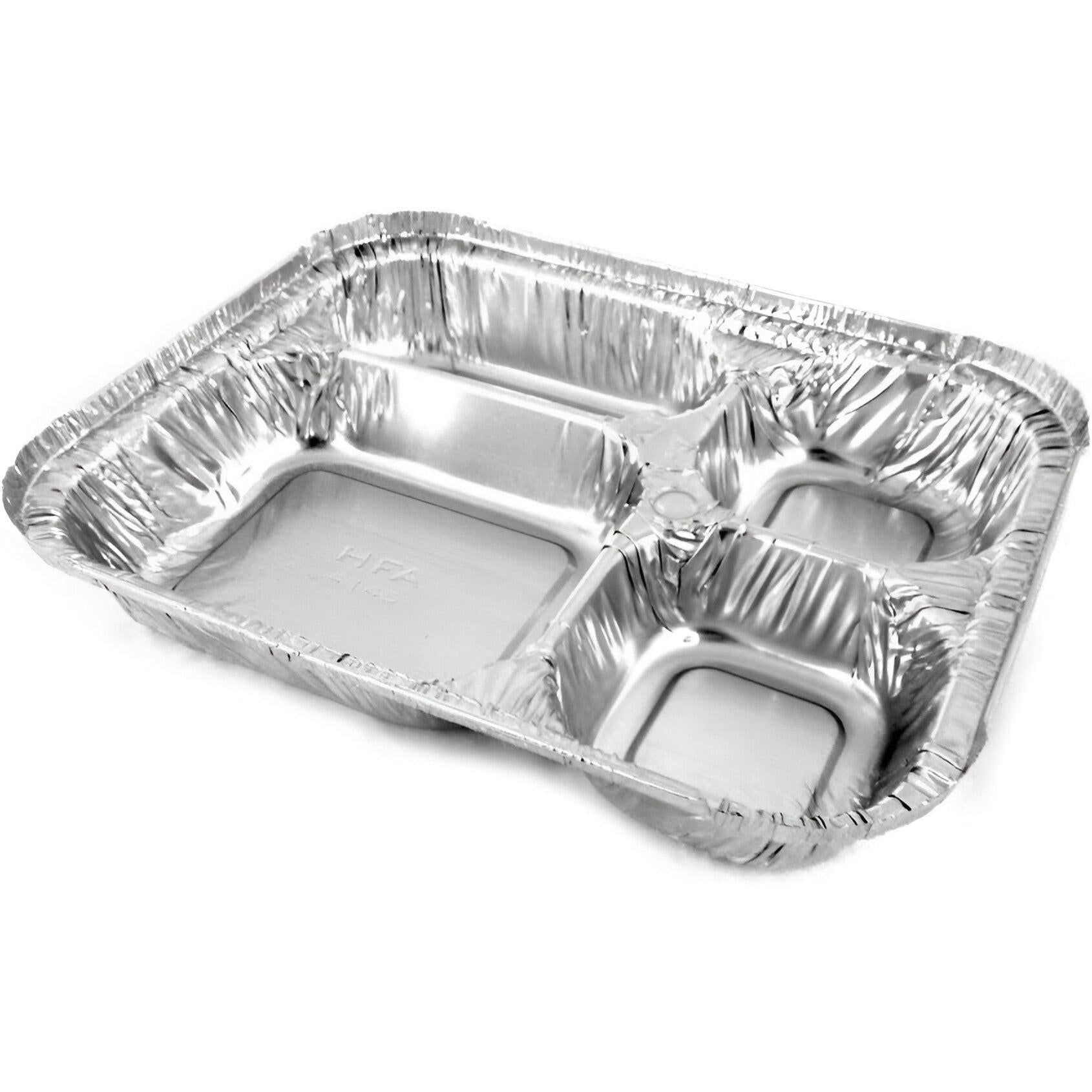 HFA Corporation Oblong 4 Compartment Foil Tray with Lid – a practical and efficient solution for culinary professionals, catering services, and home cooks. Each case includes 250 trays with lids, providing a reliable option for a variety of culinary applications. Elevate your food service and meal preparation with the HFA Corporation Oblong 4 Compartment Foil Tray with Lid. Order your case today and experience the convenience and versatility these trays bring to your kitchen.