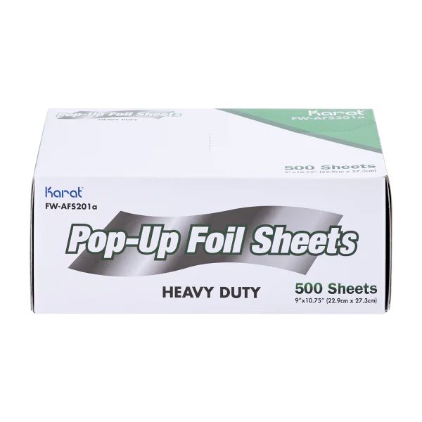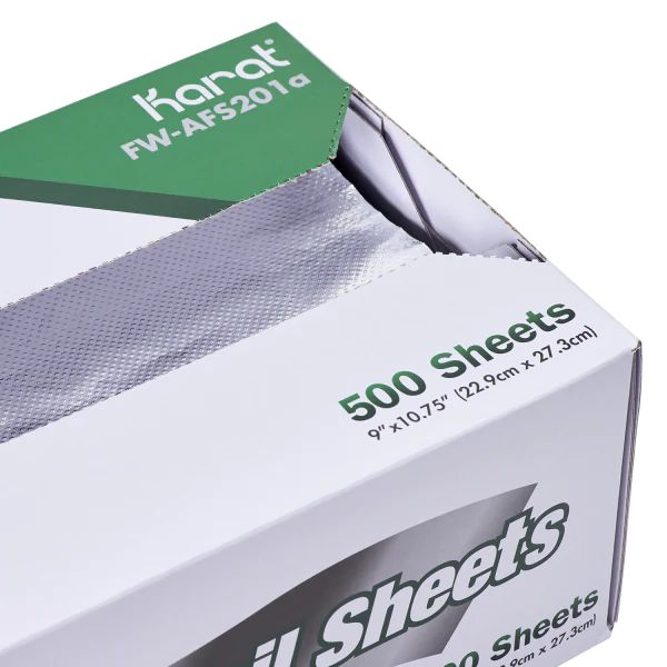 Wrap, seal, and protect with ease using Karat® Heavy-Duty Aluminum Foil Pop-up Sheets! Designed for convenience, these pre-cut 9" x 10.75" sheets are perfect for restaurants, catering services, and home kitchens, making food prep faster and more efficient. The heavy-duty construction ensures enhanced strength and durability, reducing the risk of tearing or breakage. Ideal for wrapping leftovers, to-go meals, and food storage, these foil sheets help maintain the temperature of both hot and cold foods. They are oven-safe, leak-resistant, and recyclable, making them a reliable choice for professional and personal use.
