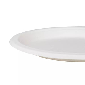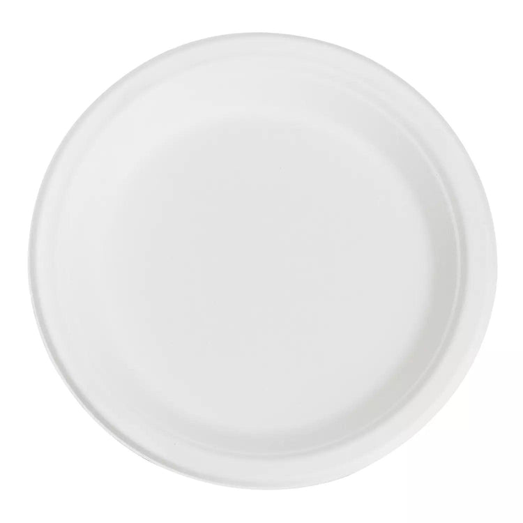 Karat Earth - 9" Round Compostable Bagasse Moulded Plates, 1-Compartment, White, 500/Case - KE-BPR09-1CFF