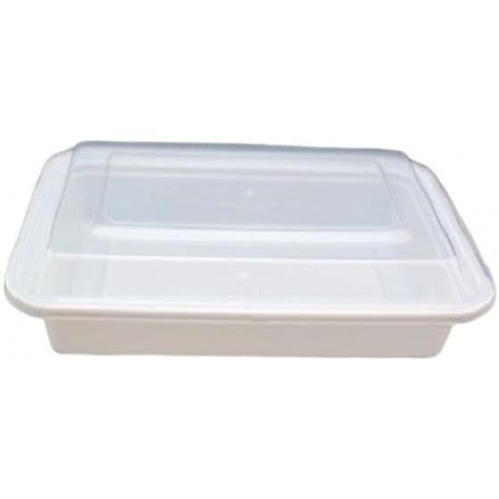 Kari-Out - 12 Oz Rectangle White Plastic Containers with Lid Combo, 150/Cs - MT6110W