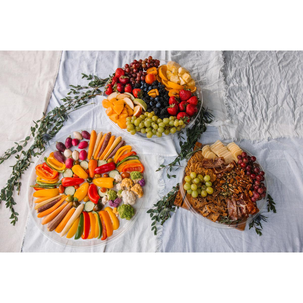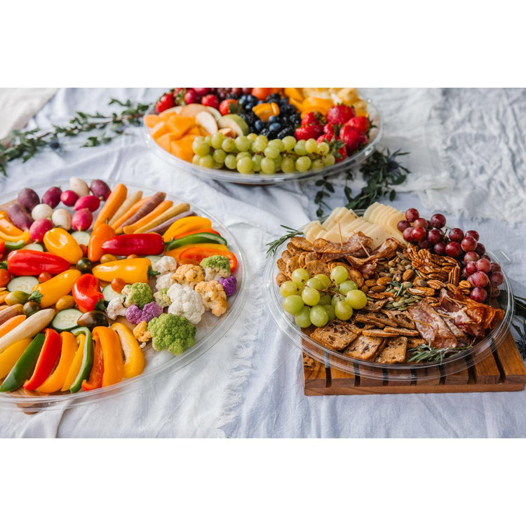 Pactiv Evergreen 16" Round PET Clear Catering Tray is a versatile and durable food packaging solution, perfect for serving and transporting large quantities of food.