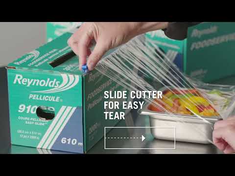 Reynolds plastic film covers, seals, and stores food with ease, keeping it fresh whenever you need it. The PVC film dispenses smoothly and the slider cutter and cutter guard make tearing quick and easy, giving you a straight cut every time and letting you stay efficient behind the counter and in the kitchen.