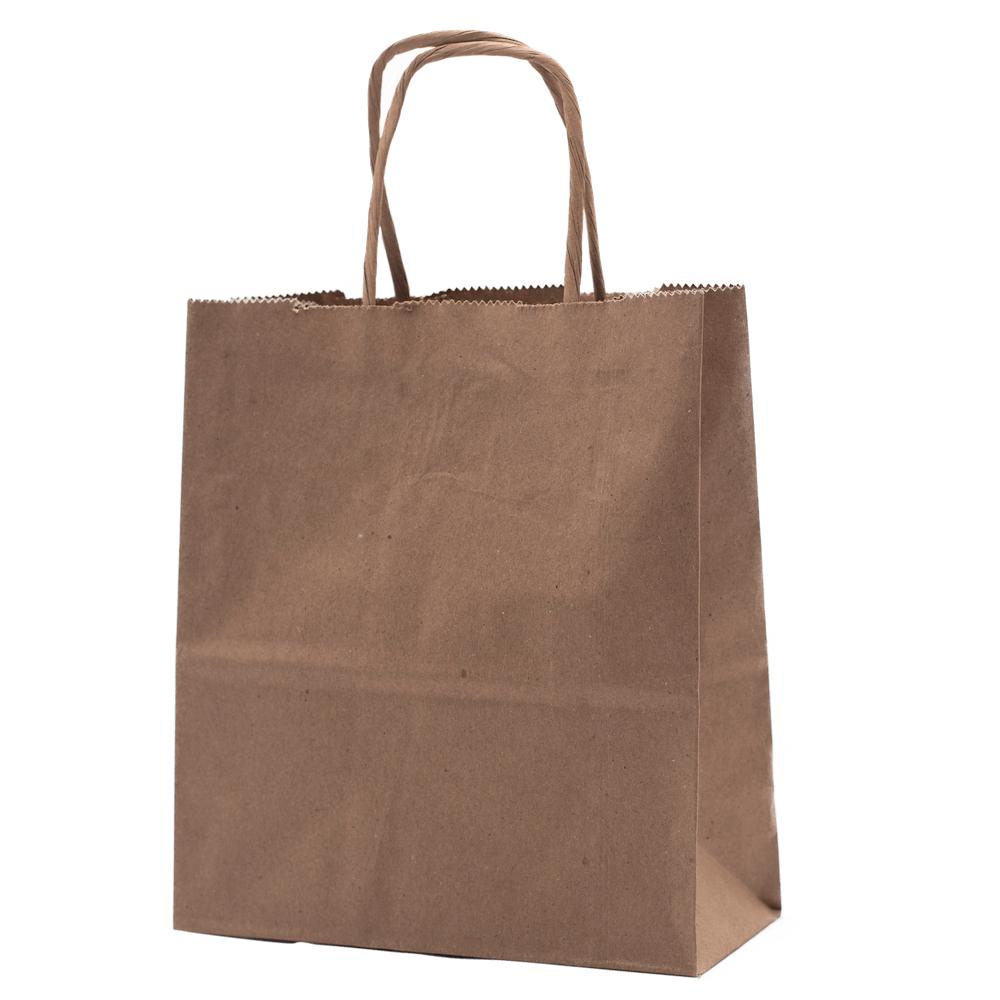 Premium Kraft Paper Build: Constructed from high-quality kraft paper, these bags offer durability alongside environmental friendliness. The robust material ensures reliable strength, accommodating a variety of items.Convenient Twist Handles: Elevate the customer experience with these bags' convenient twist handles. Not only do they add an elegant touch, but the twisted design enhances grip, ensuring comfort during transport.