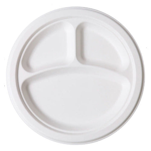 RiteEarth - 9" Bagasse 3 Compartment Round Plate, 500/cs - P093