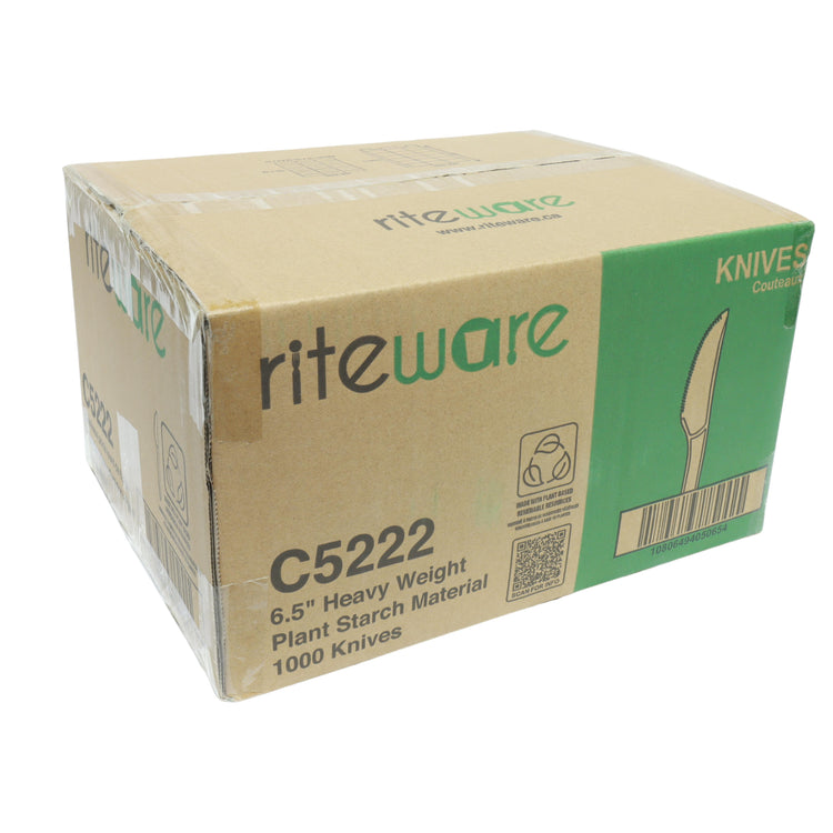 The RiteWare PSM 6.5" Heavy Weight Knives provide exceptional strength, reliability, and an eco-conscious design for all your dining needs. Made from Plant Starch Material (PSM), these knives deliver the durability of conventional plastic utensils while reducing petroleum-based plastic usage. The heavy-weight build ensures they can easily cut through a variety of foods, making them perfect for restaurants, catering services, cafeterias, and events. Convenient bulk packaging allows for efficient storage and distribution.