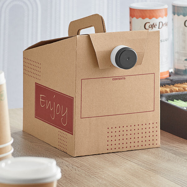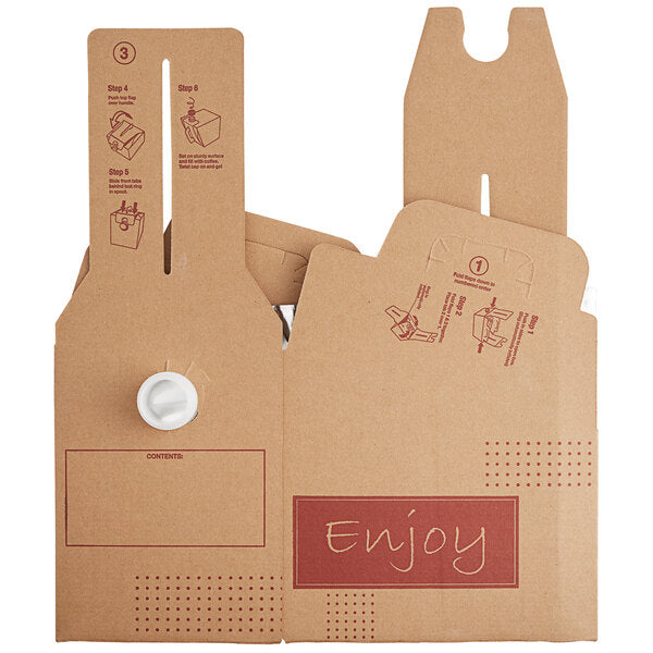 Offer your customers a convenient and reliable way to transport bulk beverages with the Sabert 7175N 96 oz Kraft corrugated carrier. This durable and resilient container, featuring an attractive stock print, keeps hot drinks hot and cold drinks cold for up to 2 hours, ensuring customer satisfaction. Its innovative "pop, fill & go" design allows for quick, one-piece assembly and stores flat to conserve space. Perfect for catering or offering coffee and other beverages "to go," each carrier holds 96 oz, equivalent to 8 (12 oz.) servings, and is sold in cases of 25.