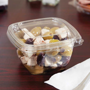 The Sabert Clear 16 Oz. Small Square Bowl with Lid is an ideal choice for presenting fresh, vibrant ingredients in a clear, clean, and space-efficient design. Part of Sabert's Cold Collection, this high-quality, disposable bowl is perfect for salads, produce, and various cold food applications. The tamper-resistant, clear PET lid ensures secure closure and helps maintain freshness. The square shape provides stackable convenience, while the 16 oz. capacity is perfect for portioned servings. Each case contains 250 bowls, making it an excellent option for foodservice, catering, and retail environments.
