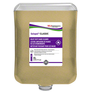 The Solopol® 4 L Classic Heavy Hand Soap is a professional-grade cleaner formulated to remove tough industrial soils such as grease, oil, and grime. Made with natural scrubbers, it effectively cleans without harsh solvents, leaving hands smooth and protected. Packaged in large 4-liter bottles, it is perfect for use in workshops, garages, and industrial facilities.