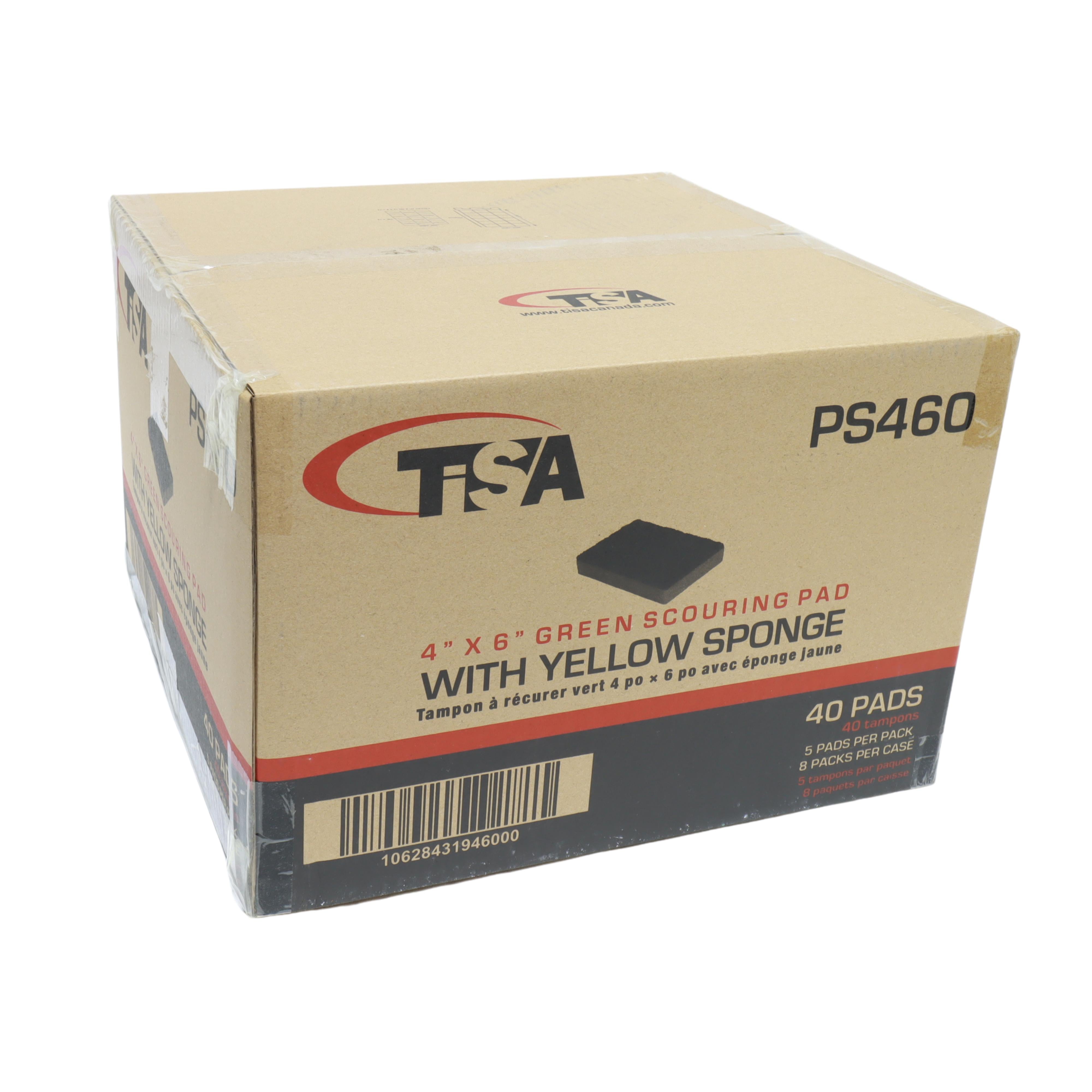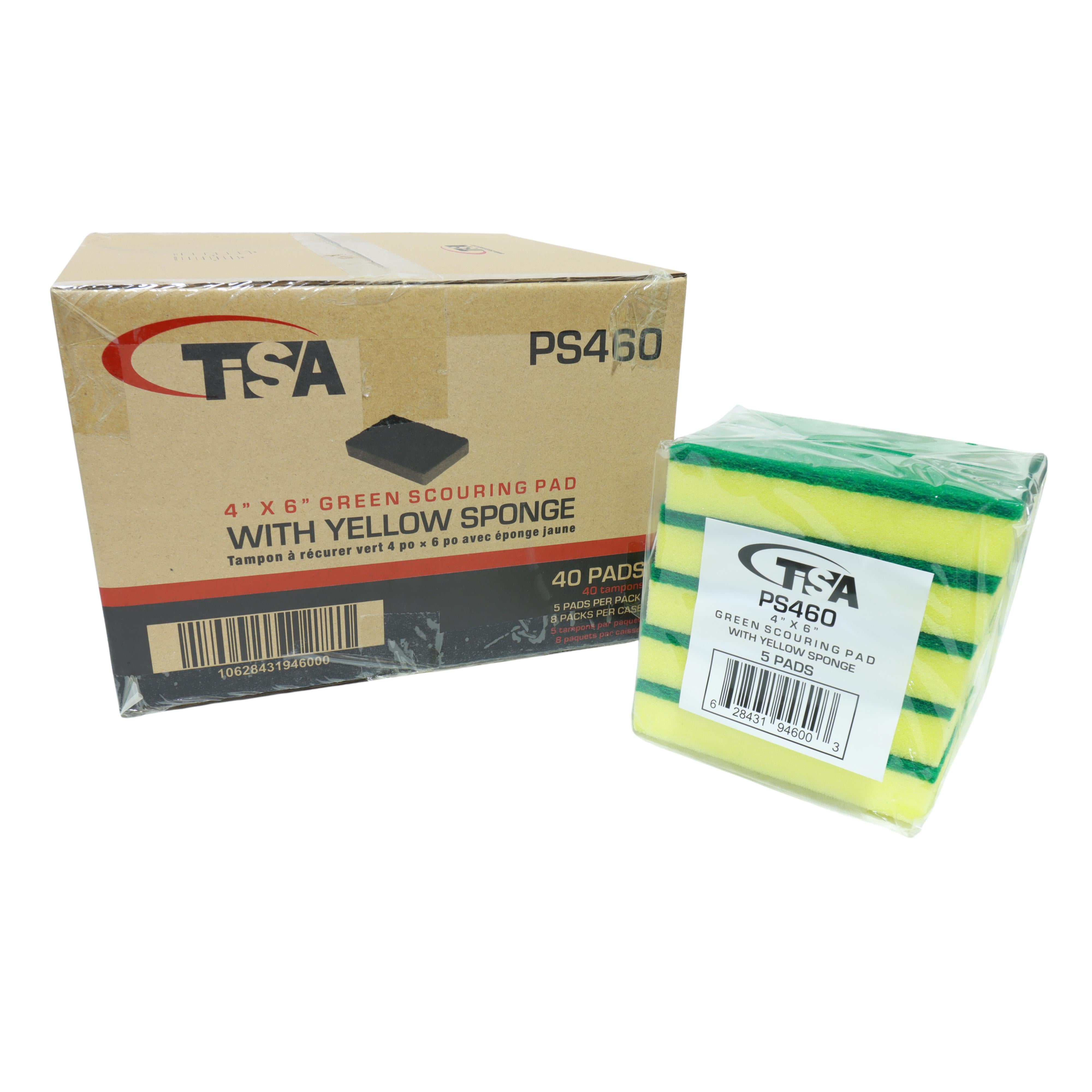 TiSA - 4” x 6” Green Scouring Pad with Yellow Sponge, 5/pk, 8pk/cs - PS460